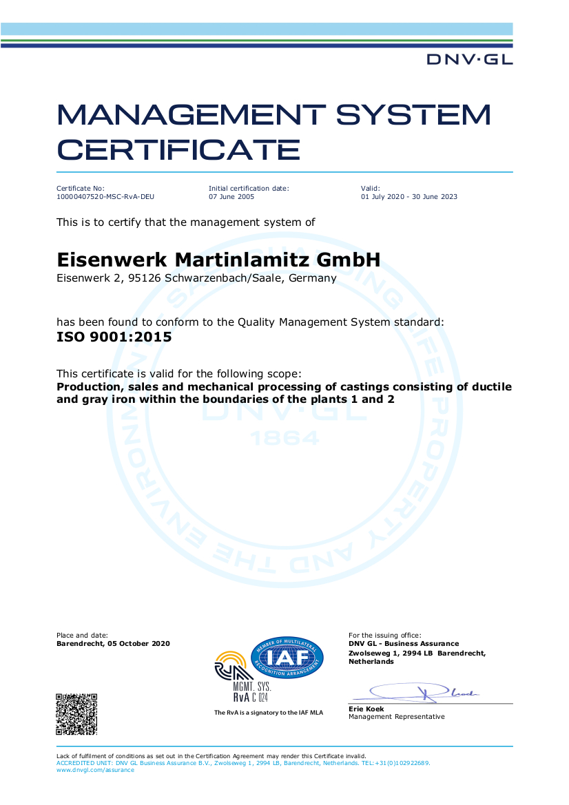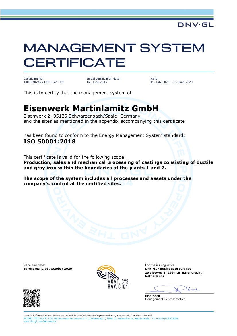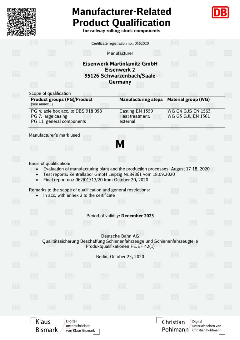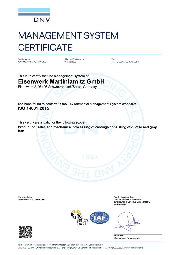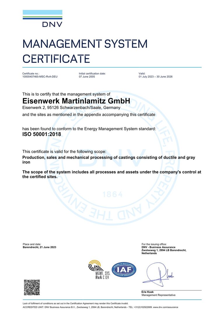 ← Click Box to go BackThe Eisenwerk Martinlamitz works according to certified standards.